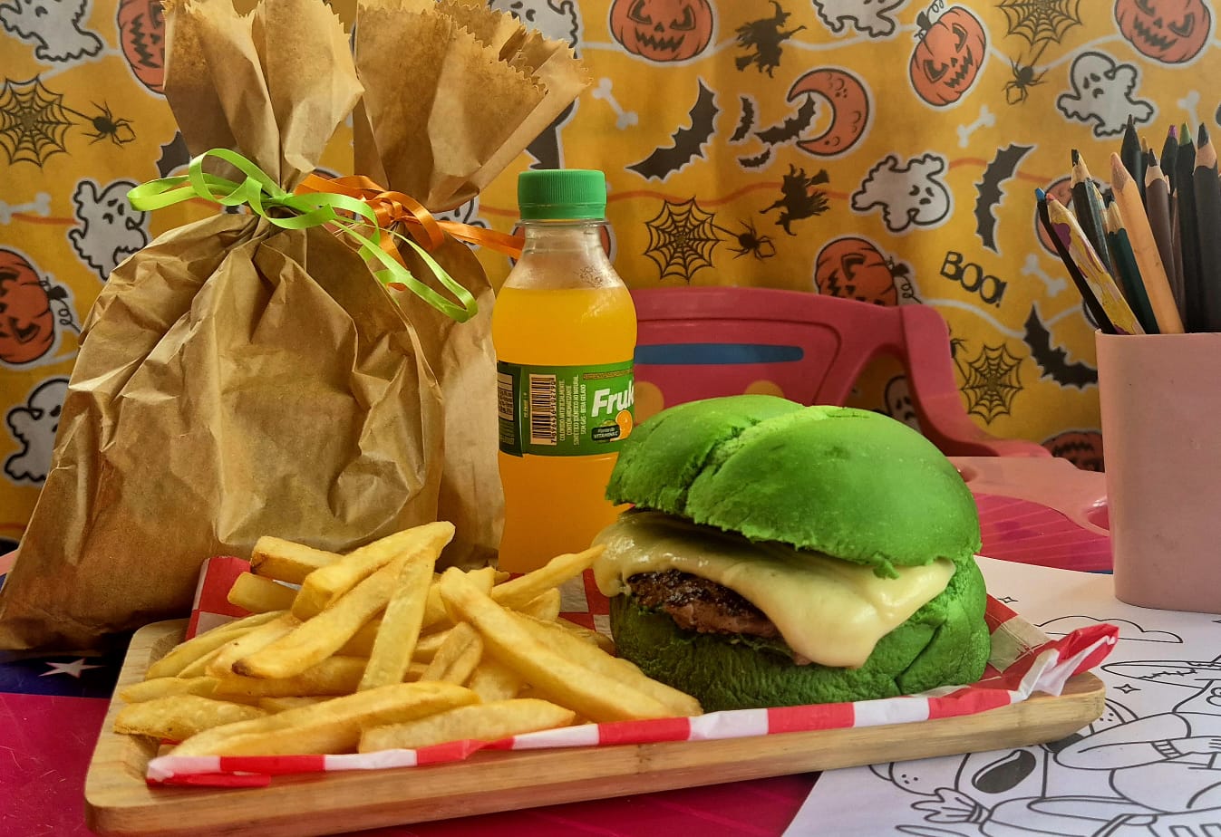 Combo Maré Kids acompanha hamburguer larikinha ou tirinhas de frango, fritas +-150g e um mino.