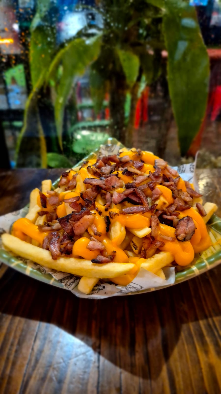 3 Burger, fritas média, 9 anéis, cheddar e bacon, 1 maionese.